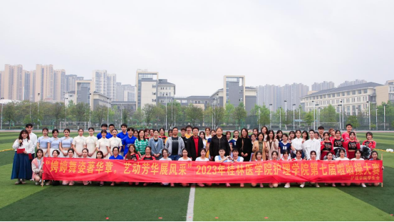 4月2日,护理学院第七届大学生啦啦操大赛在临桂校区北田径场举办。护理学院党委副书记谢勇志,学工办、团委辅导员、班主任和广大同学500余人参加活动。