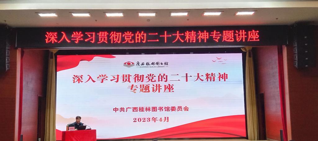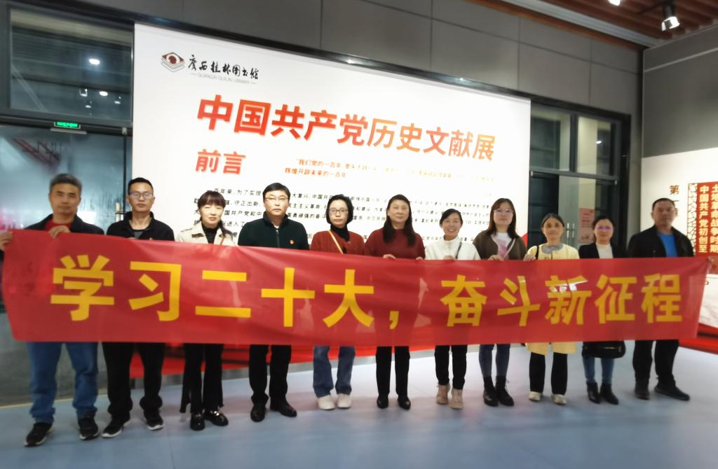 为深入开展学习贯彻党的二十大精神工作,4月3日下午,图书馆全体党员、群众赴桂林市图书馆参加“实现中华民族伟大复兴的政治宣言和行动纲领一深入学习党的二十大报告和全国两会精神”主题学习活动。