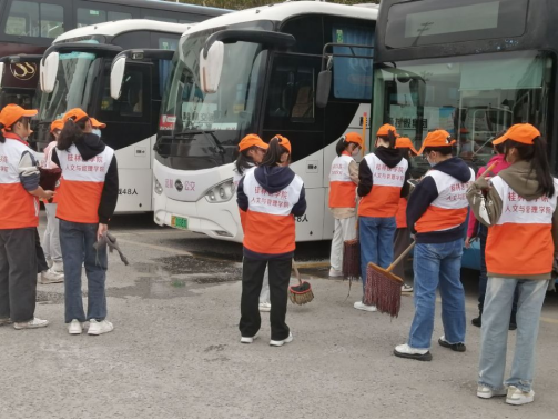 为贯彻落实好习近平总书记关于深入开展学雷锋活动的重要指示精神,以实际行动践行党的二十大精神,3月14日,团委组织学生志愿者前往飞虎公园公交车停车场开展清洗车辆志愿活动。活动现场,志愿者身穿橙色马甲,手拿拖把、抹布,先从公交车内部开始,对地面垃圾和座椅卫生进行全面清洁。打扫完车内,又对车辆外部进行清洗,不放过任何一个角落,为市民朋友打造清新整洁的乘车环境。