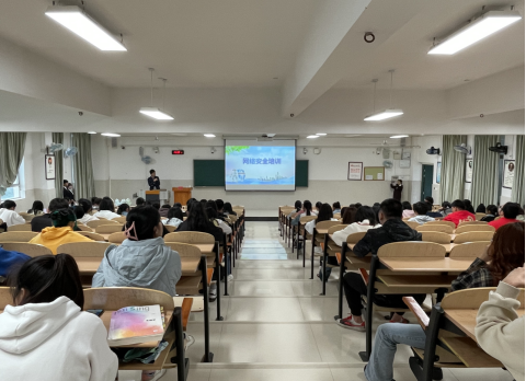 为深入贯彻党的二十大精神,加强大学生网络安全意识,规范网络行为,全面推进校园绿色健康网络安全环境建设,4月11日下午,应我校人文与管理学院邀请,以“网络安全始于心,安全网络践于行”为主题,信息中心网络科科长李智在临桂校区教学南楼S402开展网络安全知识讲座,校内众多师生到场聆听。