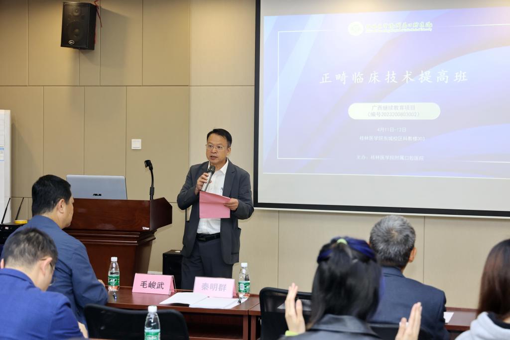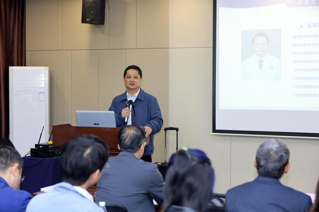 附属口腔医院院长秦明群为学习班致辞。他指出,此次学习班旨在学习交流正畸临床治疗新理念、新技术,学习班邀请到国内众多知名专家教授进行授课,内容丰富,切合实际,希望学员能够认真学习、积极交流讨论,带动所在医疗机构正畸诊疗能力提升,为健康广西建设作出贡献。