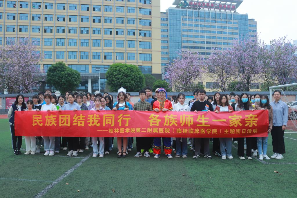 为学习贯彻党的二十大精神,引导各族师生牢固树立正确的国家观、历史观、民族观、文化观、宗教观,增进师生对伟大祖国、中华民族、中华文化、中国共产党、中国特色社会主义的认同,4月15日上午,临桂临床医学院(第二附属医院)团委在医院足球场开展“民族团结我同行,各族师生一家亲”主题团日活动。临桂临床医学院班级大学生导师、学工办老师、20级学生,以及第二附属医院职工团员代表参加此次活动。