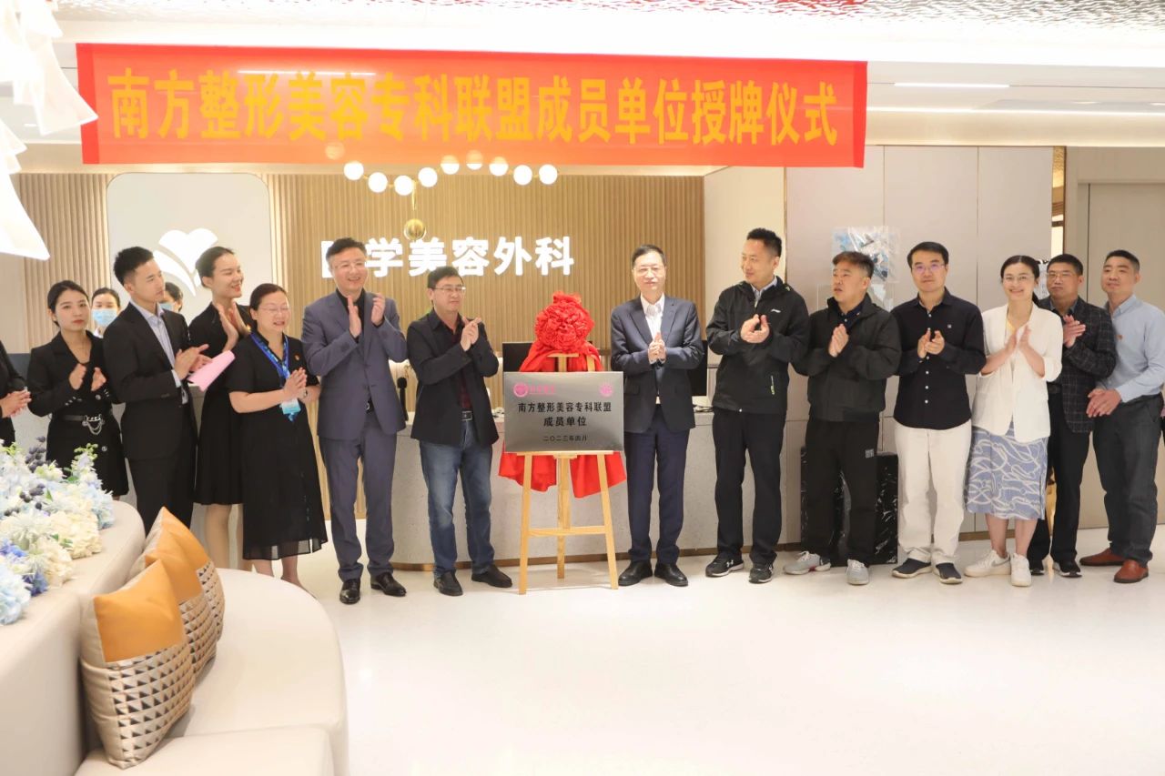 义诊活动结束后,双方在附属医院医疗美容门诊部举行了“南方整形美容专科联盟成员单位”揭牌仪式,袁晟光主持揭牌仪式,南方医院整形美容外科主任胡志奇教授、附属医院医学美容外科主任龚震宇教授共同为“南方整形美容专科联盟成员单位——桂林医学院附属医院”揭牌,这标志着附属医院作为首批成员单位加入到南方整形美容专科联盟。袁晟光对双方合作提出了三点期望:一是发挥远程医疗作用,实现专科联盟内诊疗信息互联互通;二是积极开展专科培训,鼓励进修培训,定期进行学术交流;三是实施双向转诊,改善患者看病就医体验。