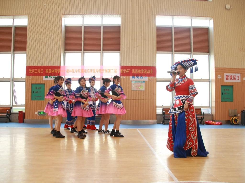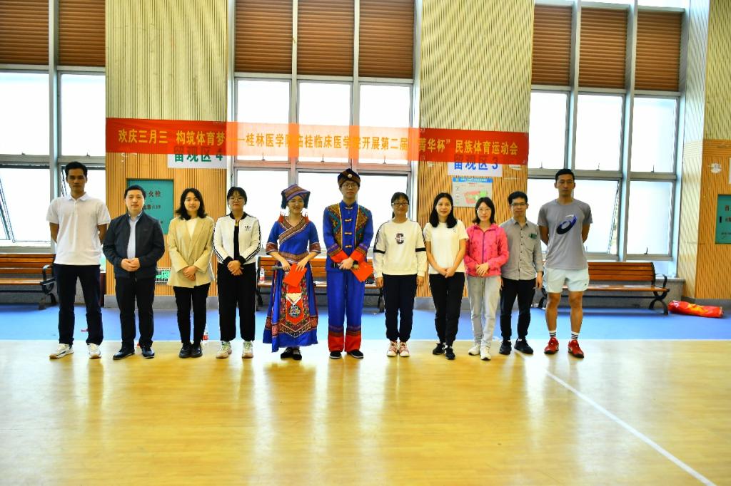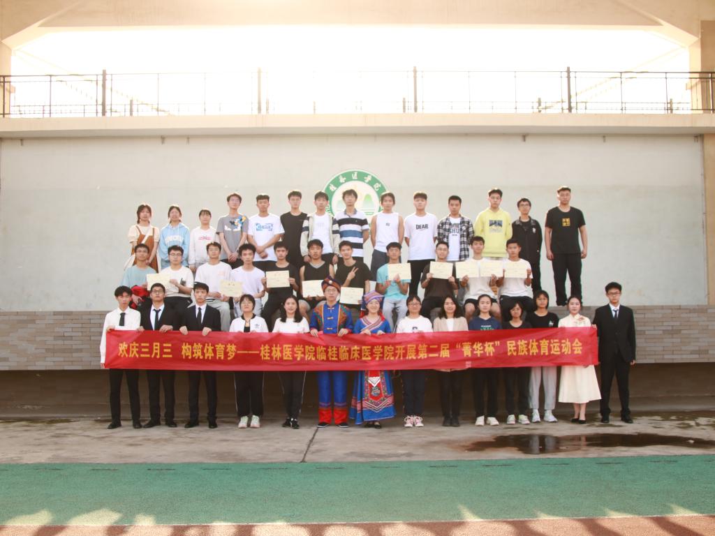 为加大体育文化建设,积极推动广西民族传统体育发展,弘扬民族传统体育文化,增强民族团结和谐的氛围,铸牢中华民族共同体的意识,让学生感受广西特色节日“三月三”的独特魅力,4月15日下午,临桂临床医学院在临桂校区举办第二届“菁华杯”民族体育运动会。学院学工办老师,班级大学生导师、班主任,以及学院25支学生代表队参加此次活动。