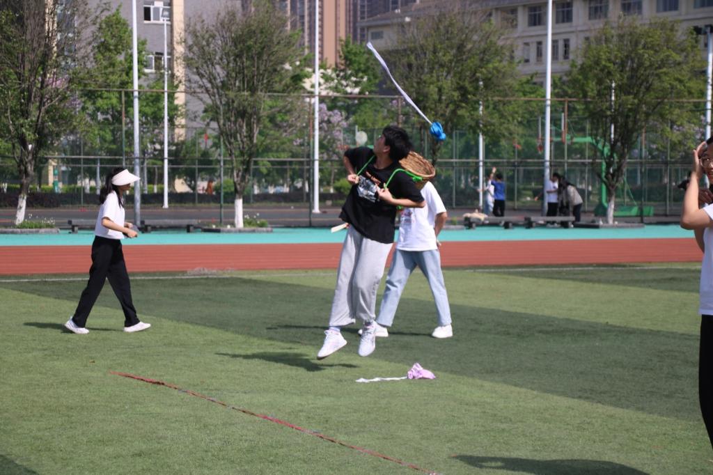 学院菁华艺术团带来歌舞表演《壮族敬酒歌》,拉开了本次活动的序幕。此次运动会包括拔河比赛、背篓绣球、三人板鞋和飞盘比赛四个项目。随着拔河比赛裁判员的哨声吹响,各队伍动作与发力一气呵成。背篓绣球比赛的彩色绣球快速飞动,接球队员沉着接球,赛场上不时响起绣球入背篓的声音。三人板鞋4×50米接力赛的各队伍选手团结协作,在赛场上边喊着整齐的口号边快速迈开步伐奔向终点。飞盘比赛的选手们配合默契,将飞盘一次次传递,最终在对方得分区成功接盘。比赛现场洋溢着浓郁的民族风情,欢笑声、呐喊声此起彼伏。