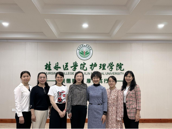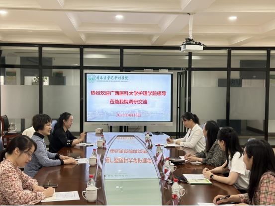 戴云云对护理学院的历史沿革、办学基本情况、专业建设成效等作了汇报。刘桂瑛详细介绍了广西医科大学护理学院在护理实践教学管理、人才培养、师资培训等方面的诸多举措以及护理学专业认证工作方面的成功经验,为学院临床护理教学基地建设和护理学专业认证筹备工作提供了宝贵经验,令人感受颇多、受益匪浅。