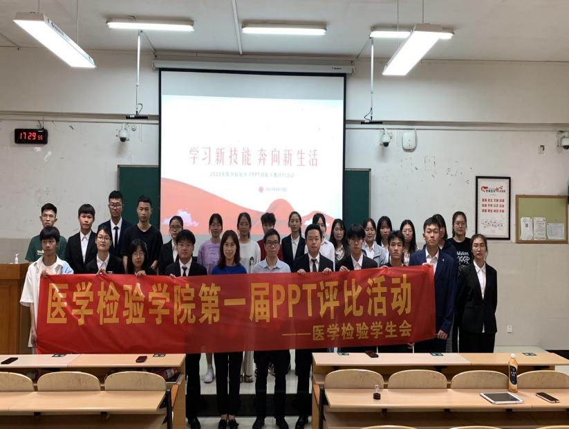 为增强学生PPT制作技能,提高学生的信息技术应用能力、创新创造能力、现场表达能力和应变能力,4月18日下午,医学检验学院在临桂校区教学南楼S102室举办首届PPT技能大赛。学工办主任、团委书记及相关社团负责人参加比赛并担任评委,2021、2022级医学检验技术本科班学生代表到场观看。
