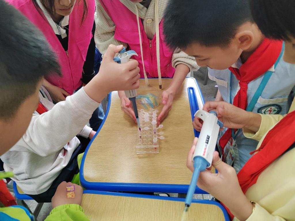 为激发青少年对科学技术的好奇心,提升青少年对科学知识的兴趣,让更多民众有机会体验生物医药的科学魅力,智能医学与生物技术学院团委学生会于4月26日前往桂林师范高等专科学校附属崇文小学开展了“‘医’带一路——核酸检测科教半日营”活动,学院师生一行20余人参与其中。