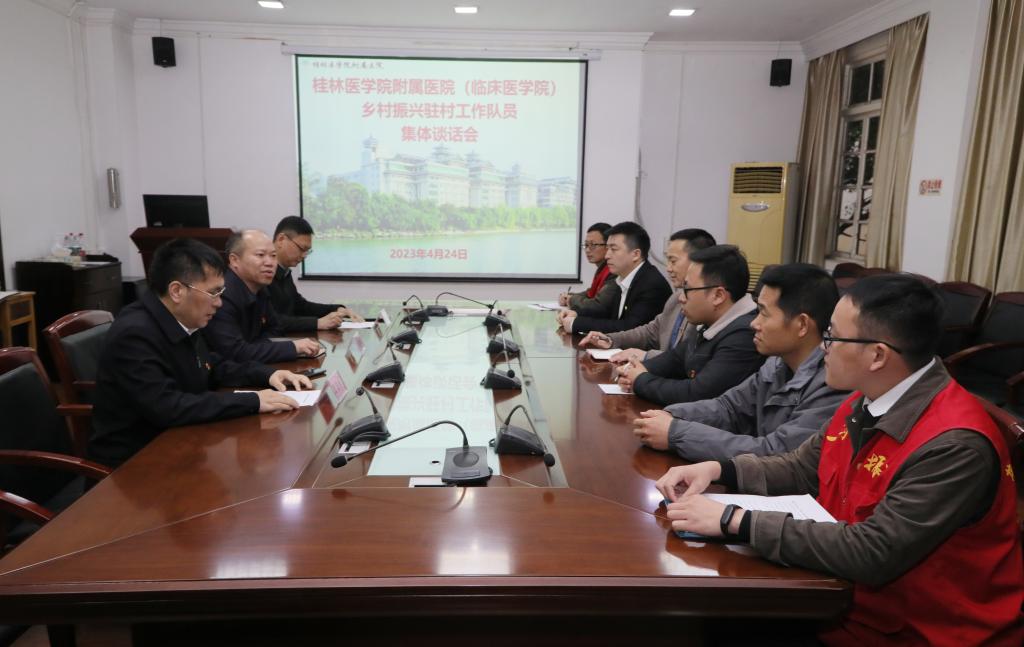 4月24日,附属医院组织了新老乡村振兴驻村工作队员集体谈话,医院党委书记覃克强,党委副书记蒋尧传,党委副书记、纪委书记滕若冰出席会议。