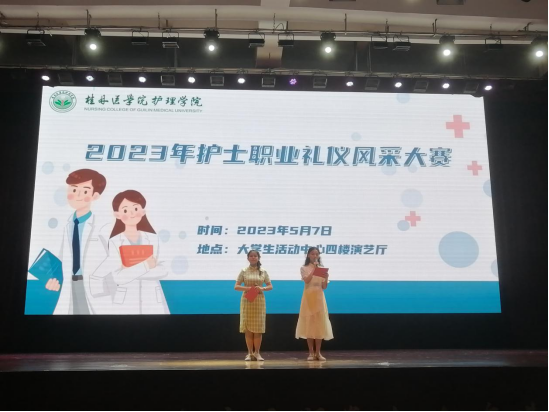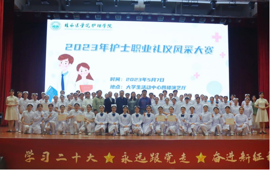 为弘扬南丁格尔精神,强化护生职业礼仪修养,展现白衣天使风采,5月7日晚,在第112个国际护士节到来之际,护理学院第二届护士职业礼仪风采大赛在临桂校区大学生活动中心成功举办。护理学院院长高燕、党委副书记谢勇志、副院长廖维甲与500余名师生共同参加活动。