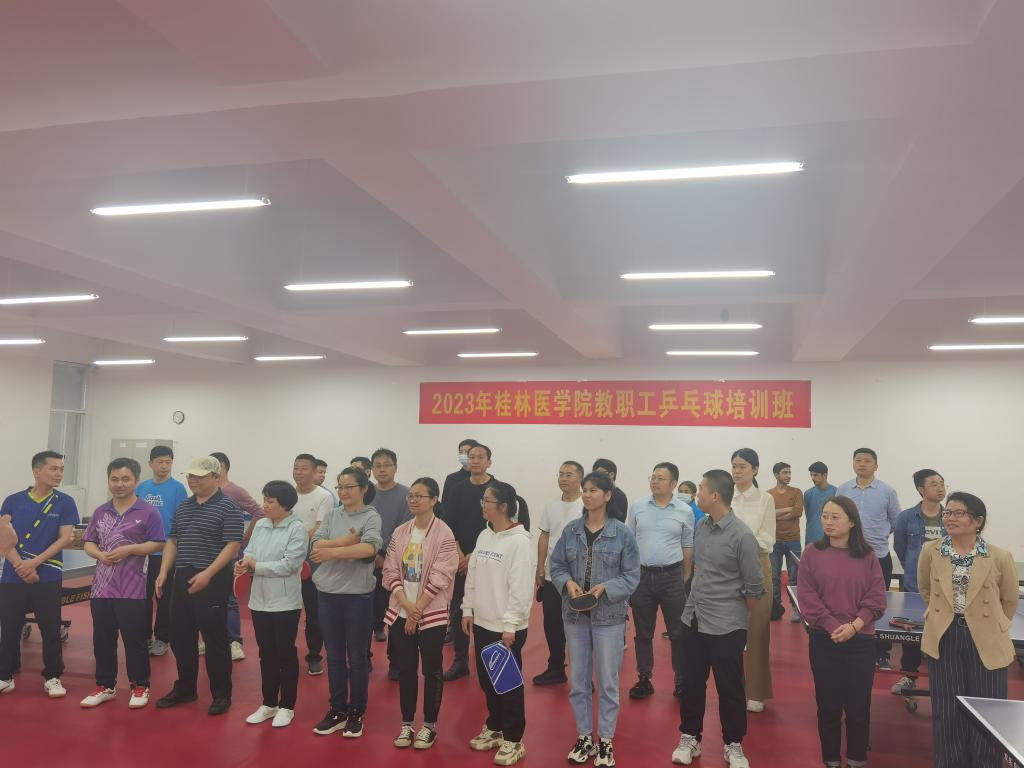 乒乓球运动在我国拥有非常广泛的群众基础和深厚的文化底蕴,并有“国球”的美誉。为促进我校乒乓球运动的开展,丰富教职工业余文化生活,普及和提升我校乒乓球爱好者的技能,5月9日,由校工会举办的2023年教职工乒乓球培训班在临桂校区大学生活动中心一楼乒乓球馆开课,近40名教职工乒乓球爱好者参加培训。