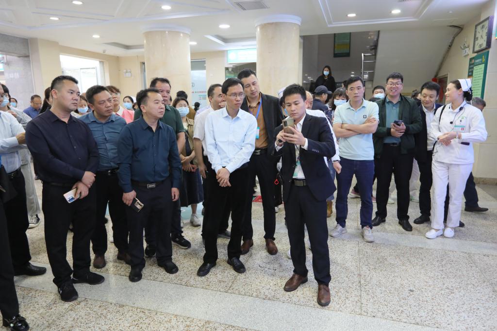 5月9日下午,自治区卫健委规划处副处长周思成带领区内各市、县卫生健康委(局)信息工作分管领导及信息工作相关部门负责人,自治区卫生健康统计信息中心、区直各医疗机构信息工作负责人等近百人分两批次到附属医院观摩,了解智慧医院、互联网医院建设和应用情况。附属医院副院长王振冉及相关部门人员陪同参观。