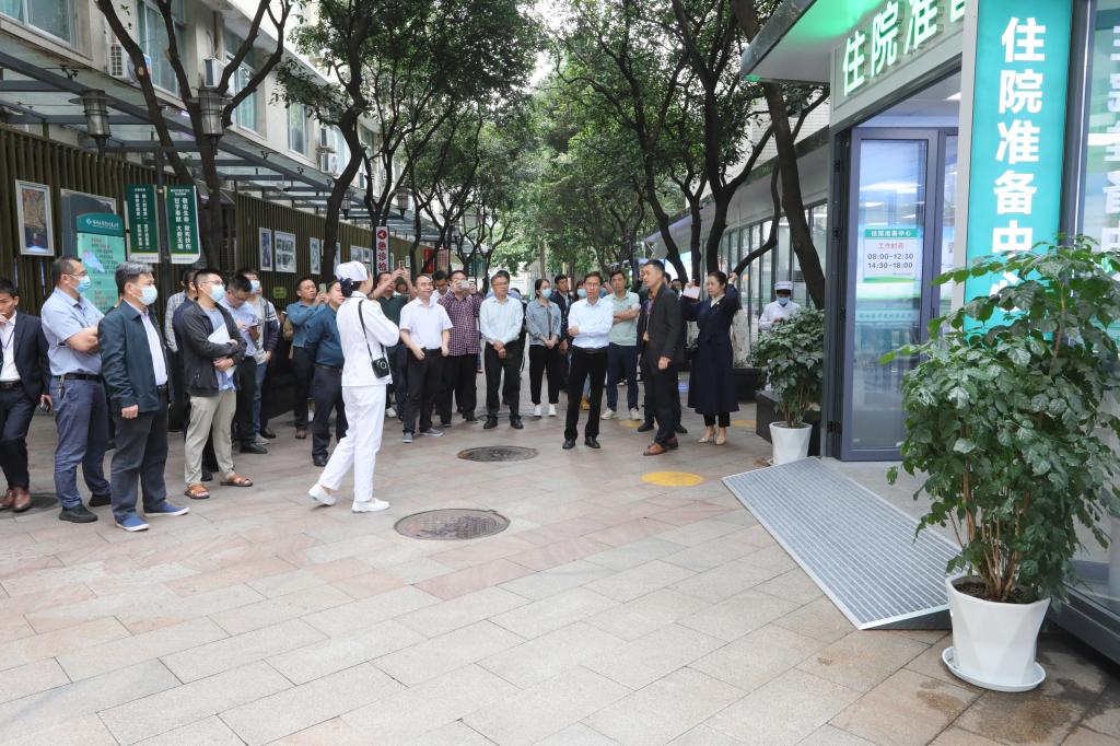 现场,讲解员向观摩团介绍了医院的概况,并详细介绍了智慧医院、互联网医院功能和应用情况。在医院门诊大厅,工作人员现场向观摩团操作演示了患者如何在互联网医院上预约住院床位和医生如何接单、评估病情及开具住院证,并对提出的疑问进行解答。随后,观摩团来到住院准备中心,进一步了解网上预约住院流程、双向转诊和床位调配机制。