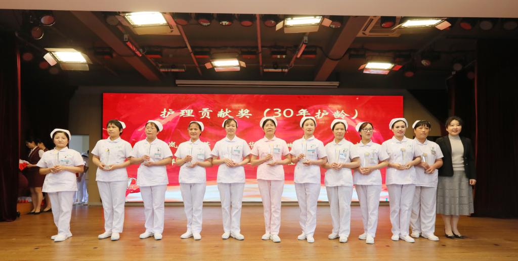 汪丽燕为护理贡献奖(30 年护龄)获奖者颁奖