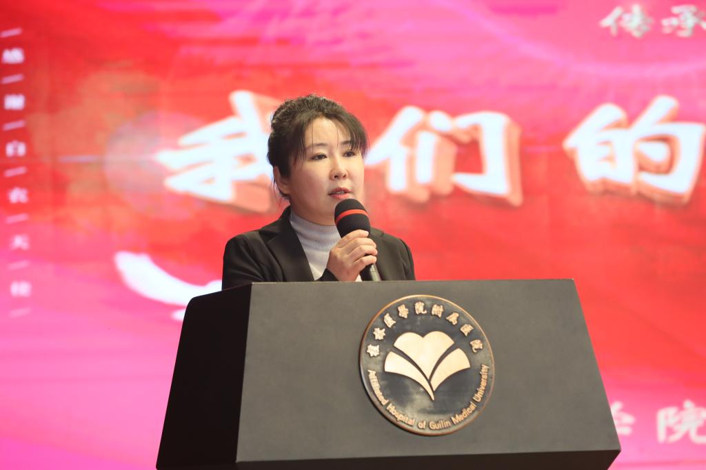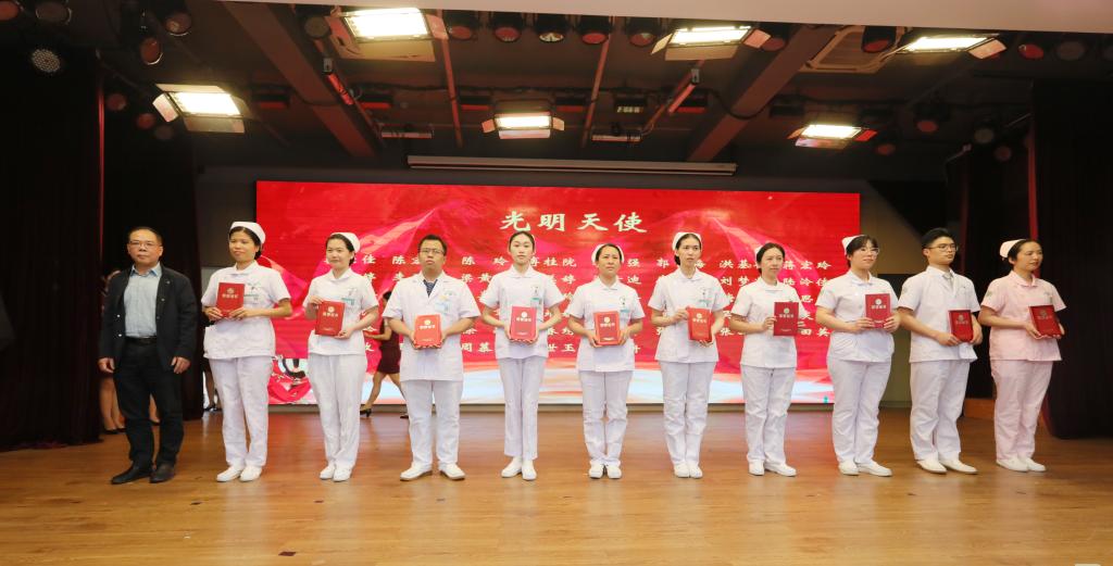 表彰结束后进行以“传承与发展——不忘初心,让护理更有温度”为主题的护士节庆祝活动。在桂医附院发展的历史长河之中,桂医附院护理人始终扮演着重要的角色。她们,在每个历史节点都掀起了一朵朵浪花,在时代的变迁中赋予了厚重的历史意义。活动以胃肠外科老中青三代护理人的朗诵拉开序幕。
