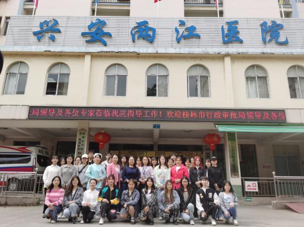 随后,全体师生来到兴安县人民医院和兴安两江医院进行参观学习,这两所医院分别是兴安当地公立二甲医院和民营综合医院代表。同学们分别参观了两家医院的内、外科门诊诊室和住院病房,近距离了解了医院的基本功能、科室设置、医疗器械配备、病人病种分布、医护人员培养和聘用等情况,让师生感受到基层医院不管是公立还是民营都具有广阔的发展空间,医护人员皆具有良好的发展前景,在基层单位、民营企业这样的小舞台也可以有大作为。