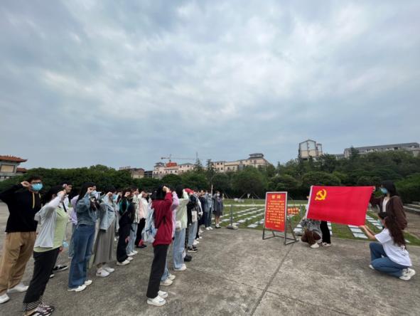 全体人员首先参观了红军长征突破湘江烈士纪念碑园。碑园由大型群雕、纪念主碑、纪念陈列馆组成。大家瞻仰了革命前辈的遗像遗物,观看了湘江战役的图像片影,聆听了断肠明志陈树湘、誓死不当俘虏易荡平、独腿将军钟赤兵的英烈故事,以及“英雄血染湘江渡,江底尽埋英烈骨,三年不饮湘江水,十年不食湘江鱼”的民谣。参观过程中,同学们心潮澎湃,眼眶泛红,仿佛置身于战役现场,切身感受了战斗的惨烈、战士的英勇、长征的艰辛和革命的艰难,领悟了不朽的红色精神和“枪杆子里面出政权”的真理。参观结束后,党员同志们面对鲜红的党旗重温入党誓词,坚定了传承红色基因的理想信念。