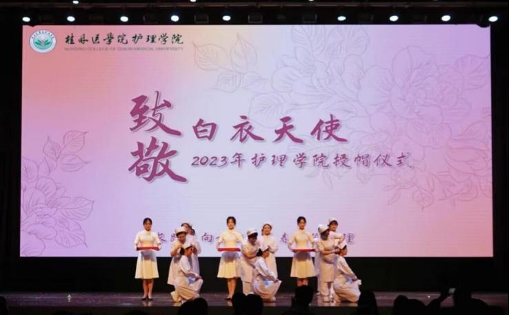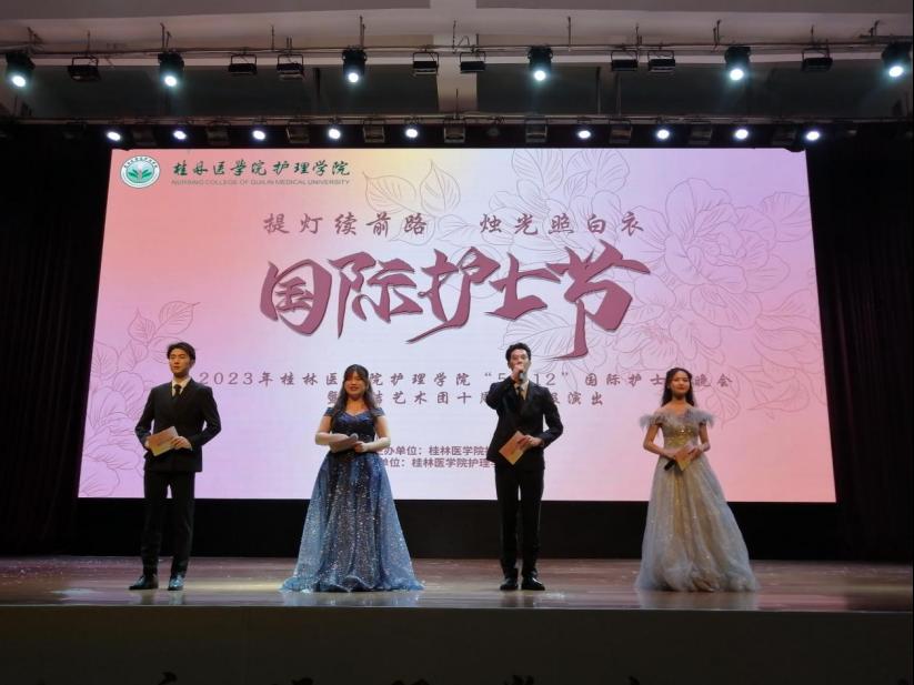 为纪念第112个国际护士节,传承护理文化,弘扬南丁格尔精神,5月14日晚,护理学院2023年5•12国际护士节纪念晚会暨圣洁艺术团十周年汇报演出在临桂校区大学生活动中心隆重举行,护理学院党政领导、附属医院优秀护理前辈代表、班级导师、班主任辅导员及近千名学生参加此次活动。
