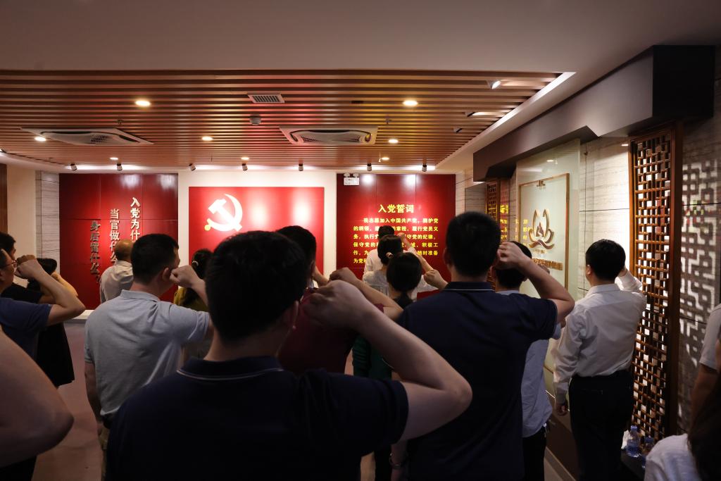 在廉政教育基地,党员干部依次参观了清廉序厅、廉政文化、八桂流芳、反腐历程、时代强音、警示教育等展厅,观看了警示教育片、违纪违法典型案例。一桩桩鲜活的案例、一幅幅生动的画面、一封封深刻的忏悔书,触及灵魂、发人深省,给在场的每位同志带来了强烈的思想冲击和心灵震撼,为全体党员干部上了一堂生动的廉政教育课,真正促使纪律规矩内化于心、外化于行。最后,由葛波带领全体人员面向鲜红的党旗,重温入党誓词,进一步坚定初心使命,牢记对党的庄严承诺。
