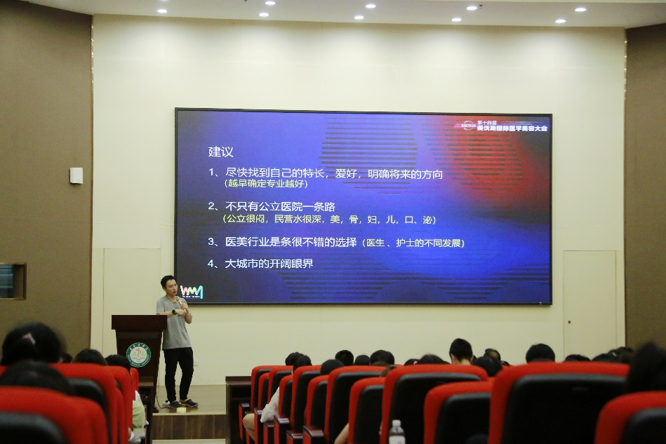 为贯彻落实党中央、国务院关于高校毕业生就业工作重要决策部署,进一步做好我校毕业生就业工作,5月16日晚,在临桂校区国教院报告厅举办了2023年就业促进周系列活动之“优秀校友就业指导讲座”。我校优秀校友、2002级医学检验本科学生、著名整形外科医生、深圳睛睛医疗美容诊所创始人曹思佳应邀回母校与同学们分享了就业创业心得。