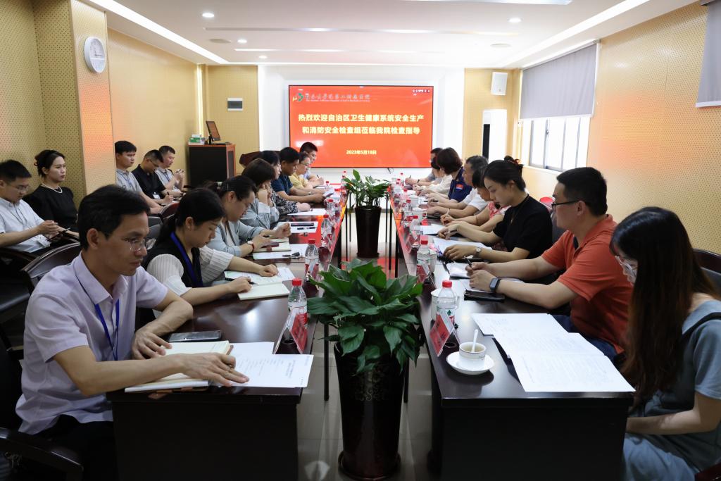 5月18日,自治区卫生健康委体改处四级调研员刘天明率检查组到第二附属医院(临床医学院)进行安全生产和消防安全检查,医院党委副书记、院长莫碧文,副院长刘颖及相关科室负责人陪同检查。