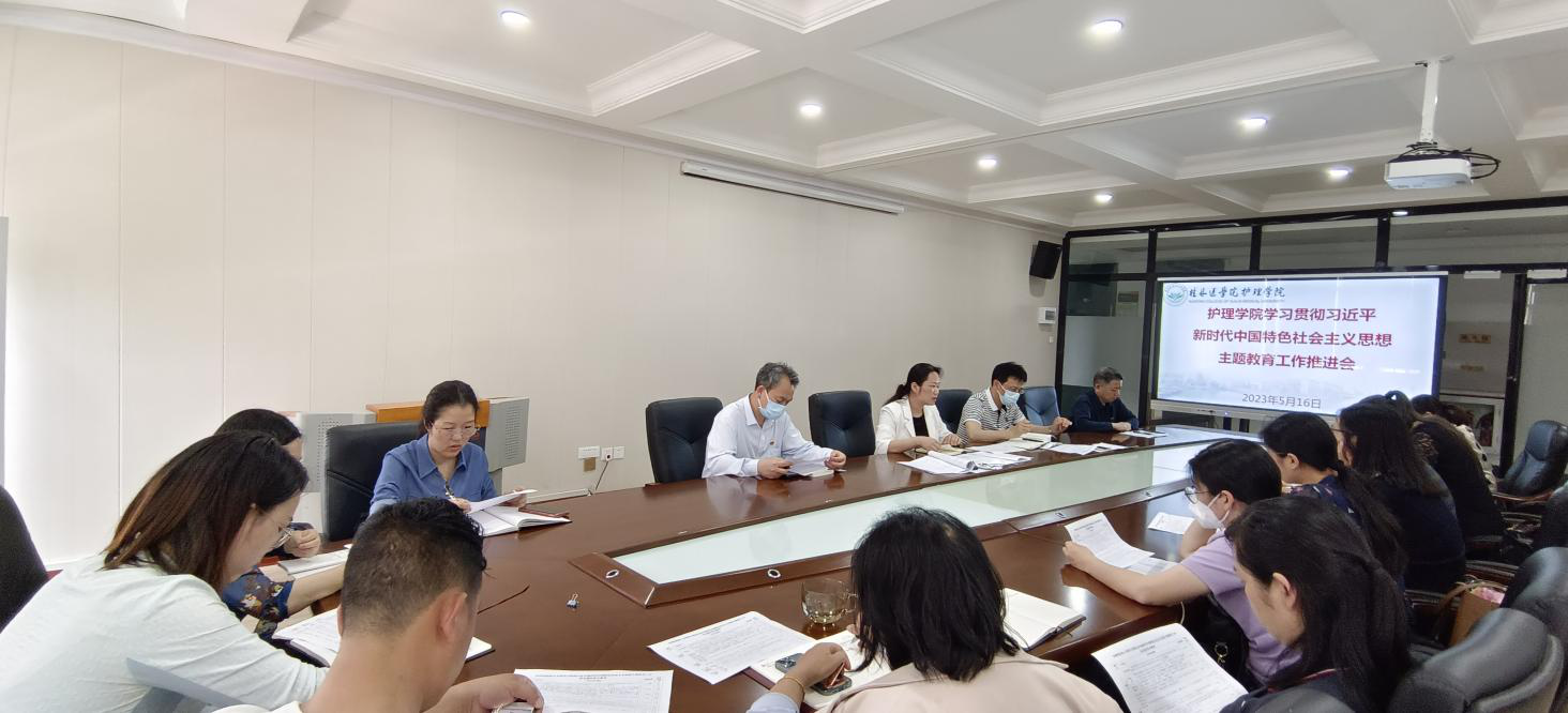 5月16日下午,护理学院在东城校区科教楼513-1会议室召开学习贯彻习近平新时代中国特色社会主义思想主题教育工作推进会。学院党委委员、纪委委员、组织员、支部书记参加会议。会议由学院党委书记秦媛主持。