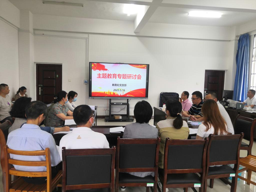 为深入开展学习贯彻习近平新时代中国特色社会主义思想主题教育,深入学习习近平总书记关于教育的重要论述,5月16日上午,教务处党支部在明德楼209会议室举行主题教育读书班第3次专题学习研讨(扩大)会,教务处全体人员参加会议,会议由党支部书记李建周主持。