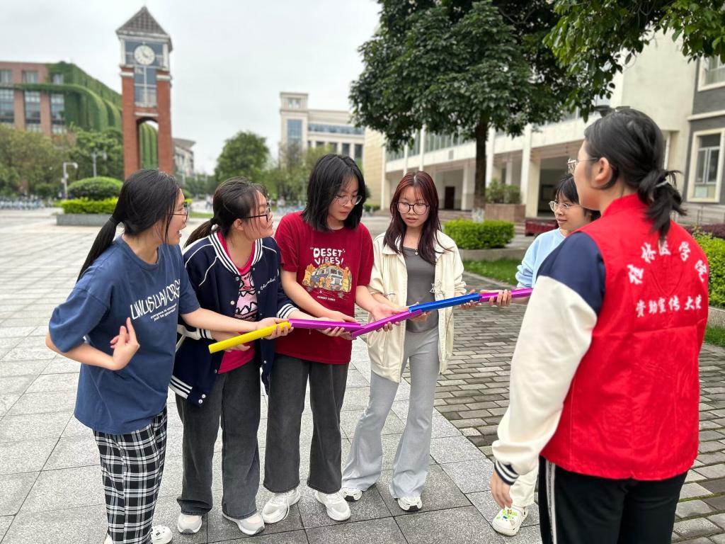 本次活动在图书馆、春华苑、钟楼、学生公寓北区等位置共设六个游园站点,33支队伍围绕游园站点,开展学生资助政策知识竞答并完成“同心击鼓”“珠行万里”“奔跑吧毛毛虫”等五个团体游戏挑战项目。各队伍提前到场预热熟悉规则,构想攻略。活动开始后,各队伍争分夺秒,迅速拉开差距。团体游戏挑战项目是对自信心、默契度、协调力等方面的综合考验,同学们在欢快的环跑游园中加深了对高校学生资助政策的认识,并在留言板上写下心声,共同向“资助”表白。赛后,各队成员均获校园文创纪念印章及站点纪念品,其中有12支队伍斩获团体奖。