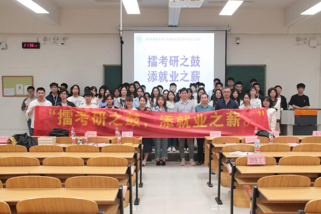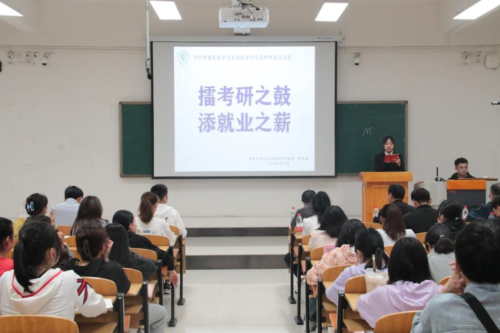 青春无问西东,努力自成芳华。智能医学与生物技术学院于5月22日在临桂校区N103教室举办了考研就业交流会,旨在帮助学生进一步明确考研规划,提供就业指导。本次交流会邀请到了6名毕业生代表作经验分享,5位教师代表出席此次活动。