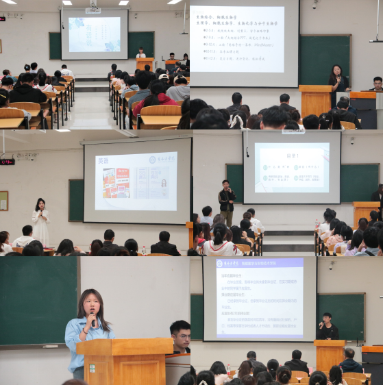 最后,教师代表郭勇、韩标、梁钧淞分别为同学们讲解了生物技术专业和生物医学工程专业的考研以及就业前景,并结合自身经历分享了对考研和就业的见解。谢磊对活动进行总结,希望同学们通过本次交流分享活动,进一步明确自身的目标,为今后的职业发展奠定良好基础。