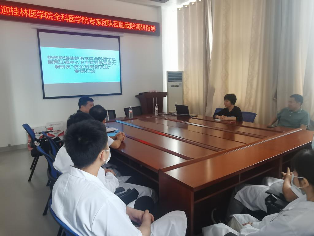 为深入学习贯彻党的二十大精神,落实党中央、国务院“稳就业”“保就业”决策部署, 5月24日,全科医学院院长郑楚一行3人到两江镇中心卫生院,深入开展“访企拓岗”调研专项行动。