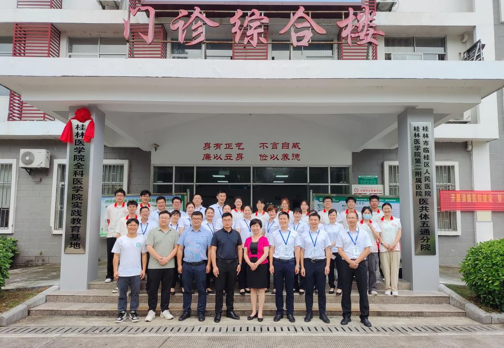 为更好地为全科学子职业发展搭建实践交流平台,6月6日上午,全科医学院第二家社会实践教育基地在临桂区五通镇中心卫生院挂牌成立。临桂区卫健局党组书记、局长徐文,全科医学院院长郑楚、党委副书记潘涛,五通镇中心卫生院领导班子参加签约挂牌仪式。