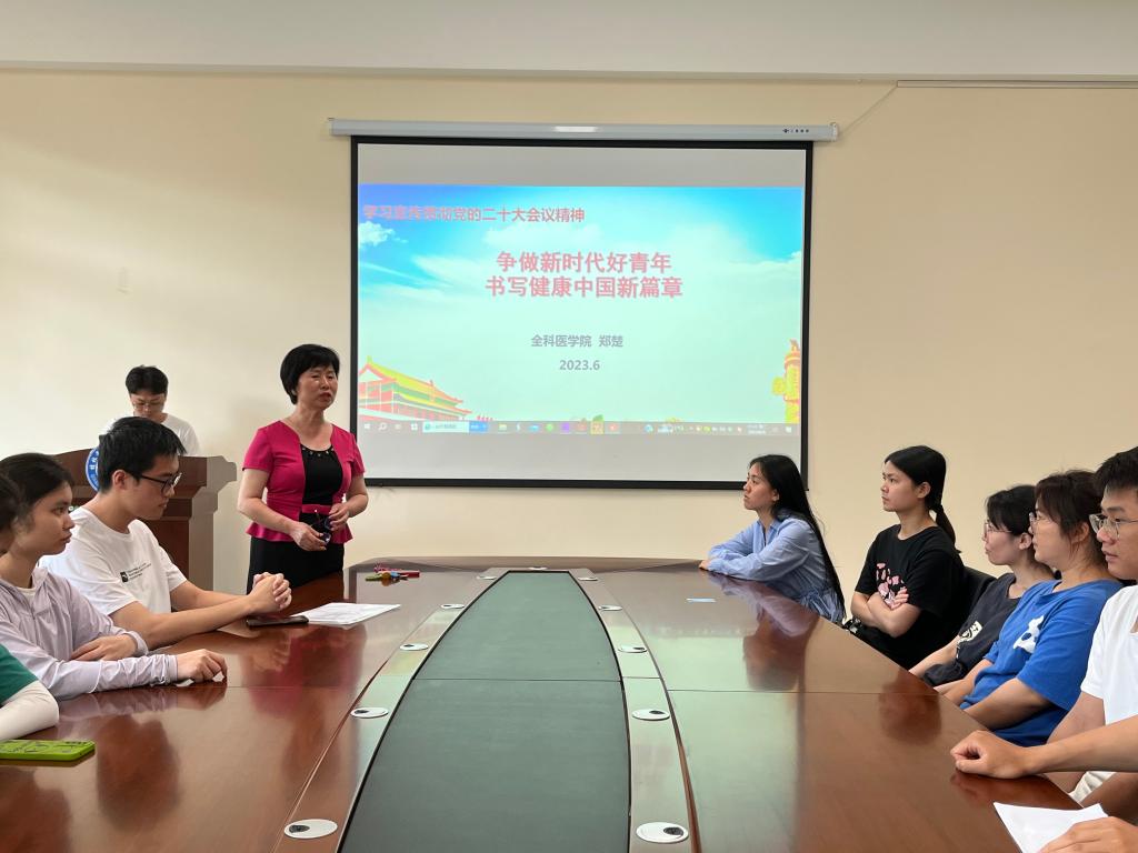为深入开展学习贯彻习近平新时代中国特色社会主义思想主题教育,激励学生党员争做新时代好青年,树立榜样典型,6月6日下午,全科医学院院长郑楚在学院211会议室为学工第二党支部全体学生党员上题为“学习贯彻党的二十大精神,争做新时代好青年”专题党课。