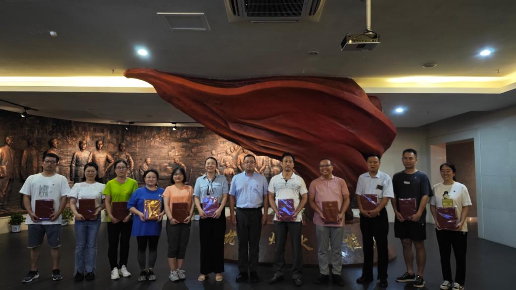 活动现场,讲解员带领支部同志参观学习,介绍纪念馆内集展览、研究、文物保管为一体,馆内陈列的“抗日烽火映桂林”展,展示历史照片逾1300张、文物实物达200余件。还通过仿真场景、电子沙盘、电子地图、多维动画等高科技手段,多层次、多视角地展示桂林军民的英勇抗战史,回顾桂林抗战文化城这一独特现象。红色实践学习后,支部书记龙亮同志在陈列馆火炬前为10位“党员示范岗”和5位党员责任区的同志授牌,并给上半年入党的14位同志过集体政治生日并赠送生日礼物。
