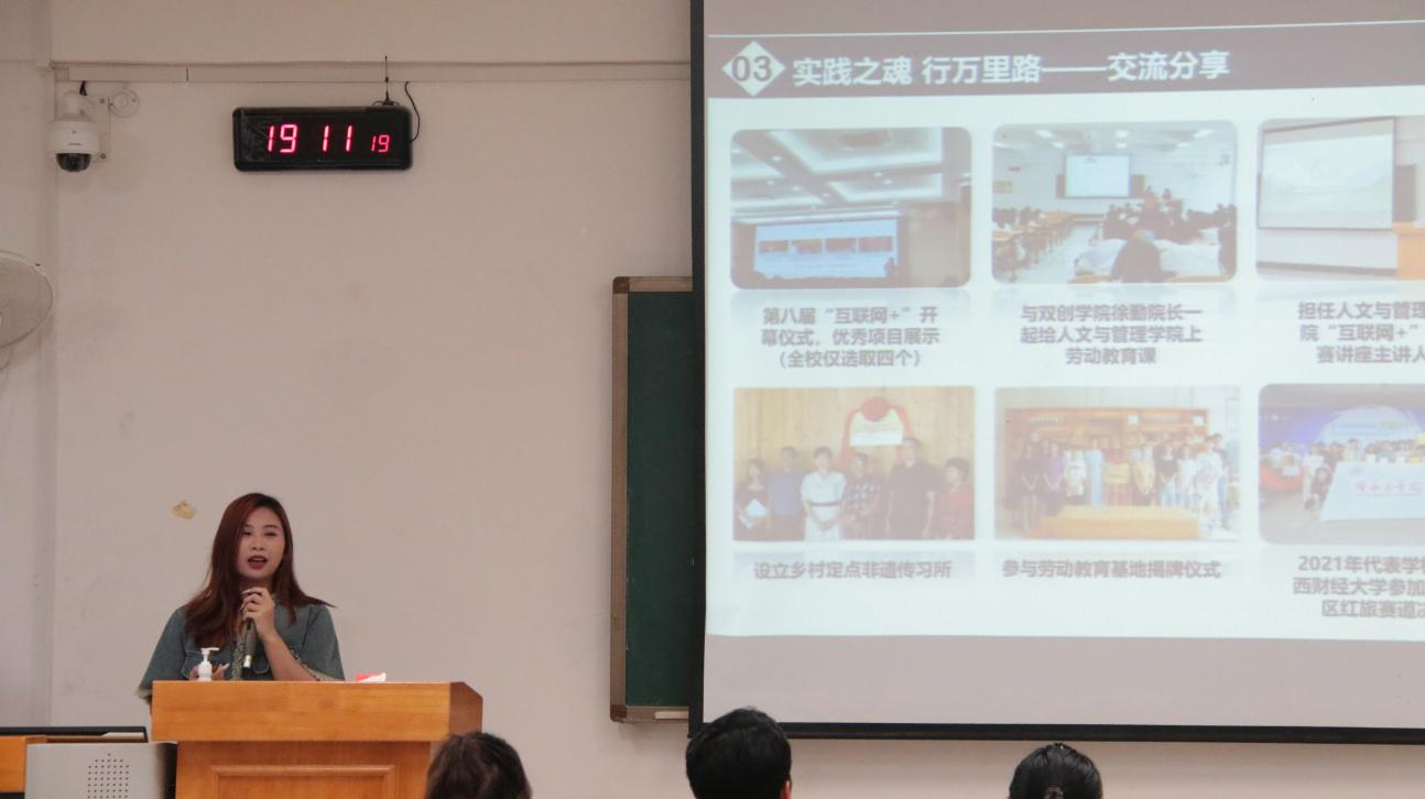 活动开始,学院学生办公室主任鼓励同学们在大学中找到属于自己的成就,在大学中脱颖而出,希望同学们向优秀学子看齐,勇于实践。随后,优秀学子刘燕翔通过分享自己的优秀履历,鼓励大家多去尝试各种活动,在实践中提升自己,找到自己的特色并发展成为自己的能力。优秀学子许懿用自己大学四年来参加的社团班级活动,以及各类获奖荣誉,告诉同学们大学是多姿多彩的,任何人都可以在不同方向获得成就。优秀学子颜祥威从自身出发,提醒同学们要正确看待荣誉,合理安排时间,积极为接下来的大学生活做准备。