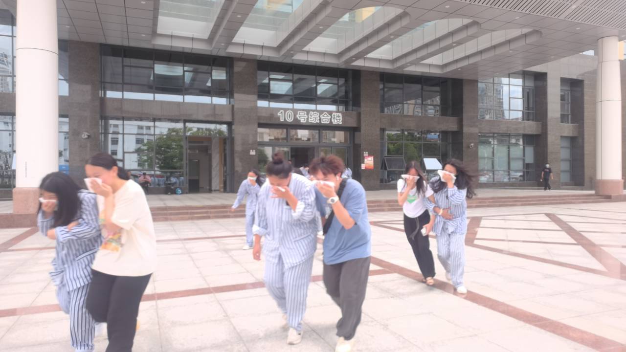“这里发生火灾,紧急呼救……”随着一阵紧急的疏散铃声响起,高楼一处窗口正冒着白烟,“大家不要慌、捂住嘴鼻……”医护人员有序指挥大家紧急疏散,捂住嘴鼻顺着楼梯两侧迅速地向安全地带疏散,在疏散过程中,行动不便患者得到重点照顾。