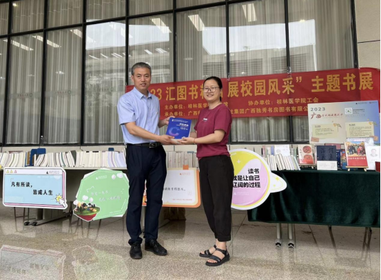 书展现场接受读者咨询和优秀书目推介,并进行了面对面的交流分享。活动期间,老师和同学们的参与热情高涨,纷纷表示感受到了阅读对提高大学生素养和校园文化建设的意义,部分读者们在现场还获赠了自己感兴趣的图书。本次书展活动加强了图书馆与读者间的联系,收获满满好评。活动结束后,广西独秀书房图书有限公司向我校图书馆捐赠图书200余册。