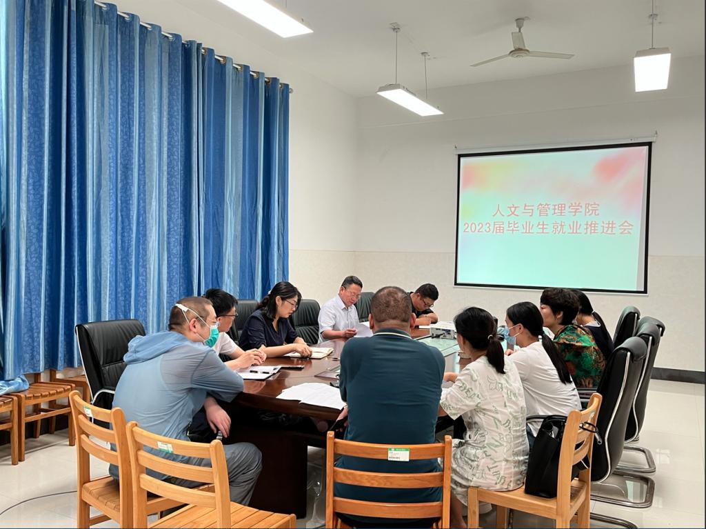 为全力做好毕业季就业工作,6月20日,人文与管理学院在人文楼108室召开就业工作推进会,学院院长石武祥,党委副书记、纪委书记周小群,副院长苗耀祥、刘栩,以及各教研室、各科室负责人参加会议。