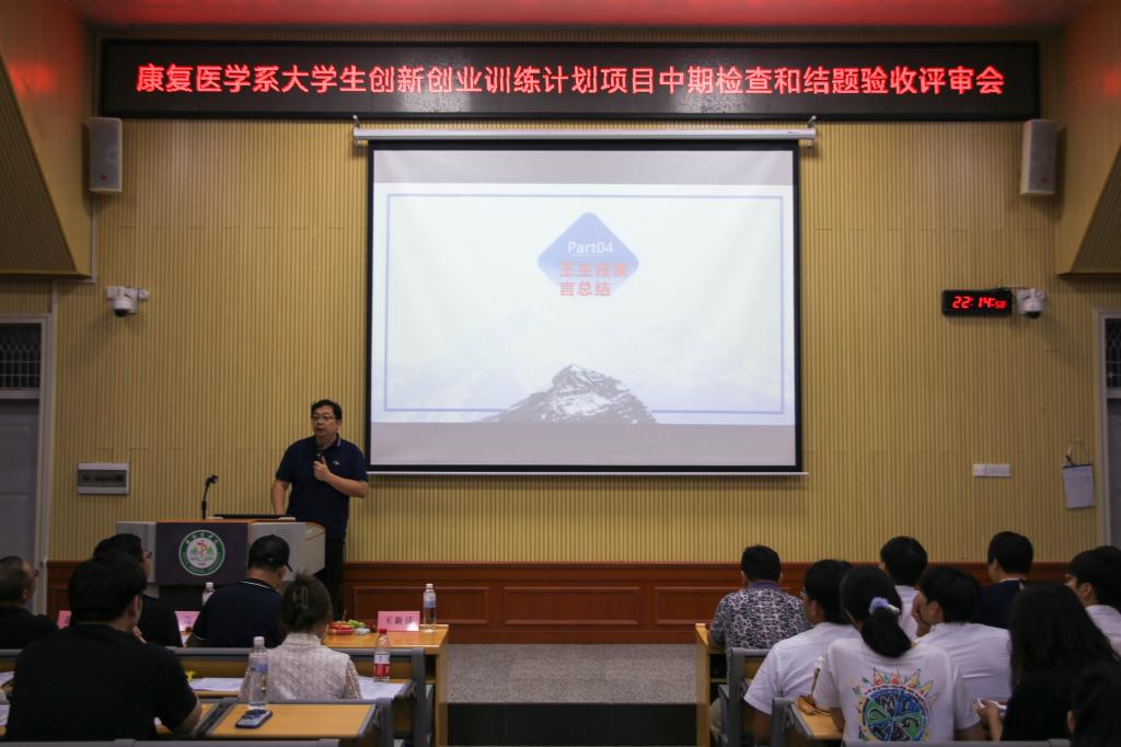6月19日晚,康复医学系在东城校区CR101教室举行大学生创新创业训练计划项目中期检查和结题验收评审会。在校学生近200人到场观摩,实习生以线上形式参会。康复医学系副主任王新涛,附属医院康复医学科副主任孔繁荣,及学工办、儿童康复科、康复医学科相关人员受邀参加评审会。