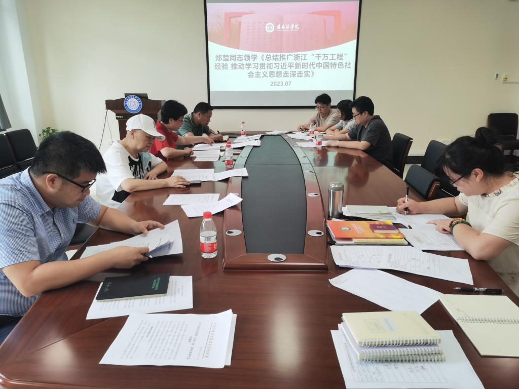 郑楚就浙江“千万工程”经验谈心得体会。她指出,要深刻领会“千万工程”经验案例的有益启示,在新时期对照学院实际改善师生关系、提升工作效能,持续做好下沉一线调查研究工作。潘涛就“浦江经验”谈感悟,他表示要通过调查研究了解教育领域的创新实践,为教育改革和发展提供新的思路和方法。