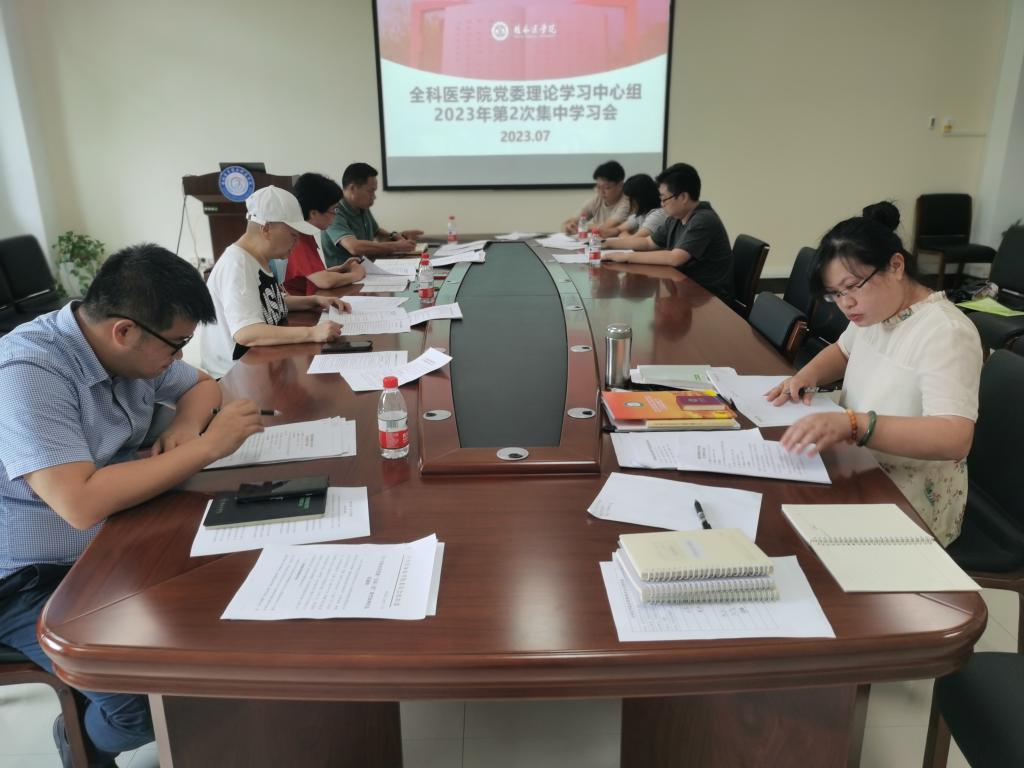 为深入开展学习贯彻习近平新时代中国特色社会主义思想主题教育,推动学院各项工作高质量发展,全科医学院党委于7月4日上午在学院211会议室召开2023年第二次理论学习中心组学习会。全科医学院党委书记马明霞,院长郑楚,党委副书记、纪委书记潘涛参加会议,专职组织员、支部书记列席会议。