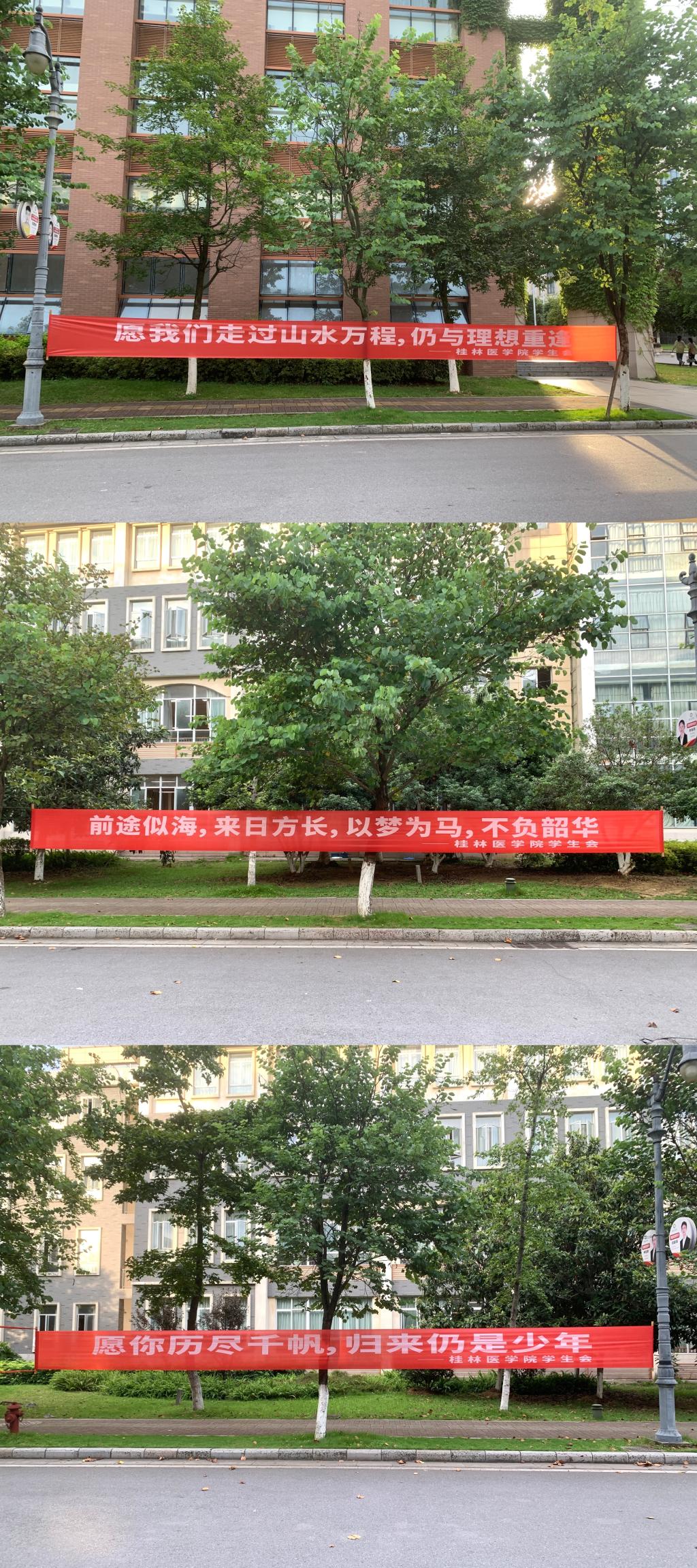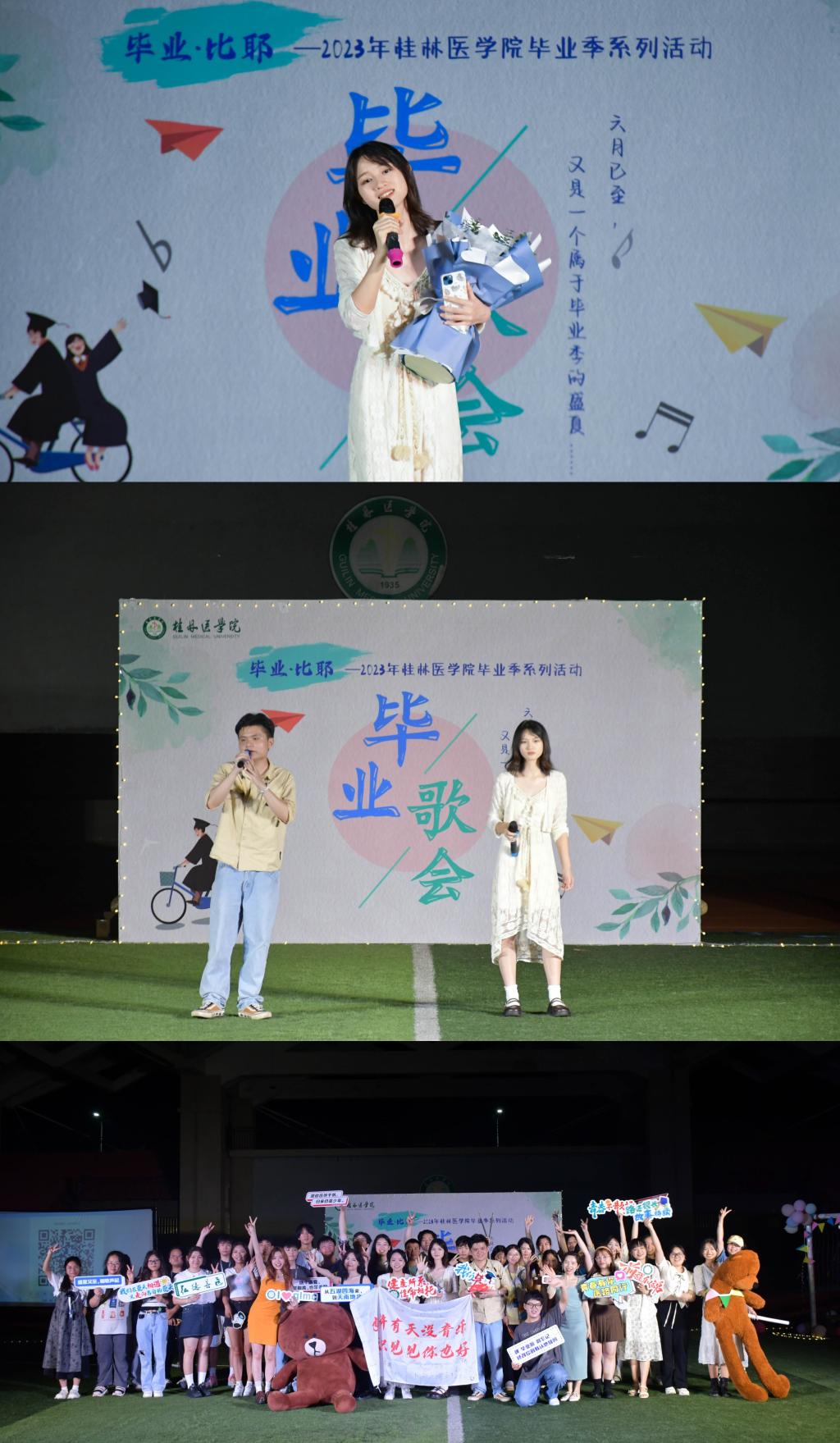 主题纪念品以我校校徽、医学生誓言和学校特色建筑等为设计元素与灵感,结合当代大学生喜闻乐见的形式设计而成;精美的主题文化产品带领毕业生同学回味大学四年或五年的时光与青春记忆,充满正能量口号的打卡拍照框和横幅等表达了对毕业生同学的祝福与期盼;“我给母校的一封信”“我与母校合个影”让毕业生同学用文字记录与表达对母校、对老师的不舍与感恩之情;毕业主题歌会以《等你下课》拉开序幕,以全场合唱《凤凰花开的路口》与《再见》等歌曲结尾,在动听的歌声中互诉不舍之情与表达祝福之意。