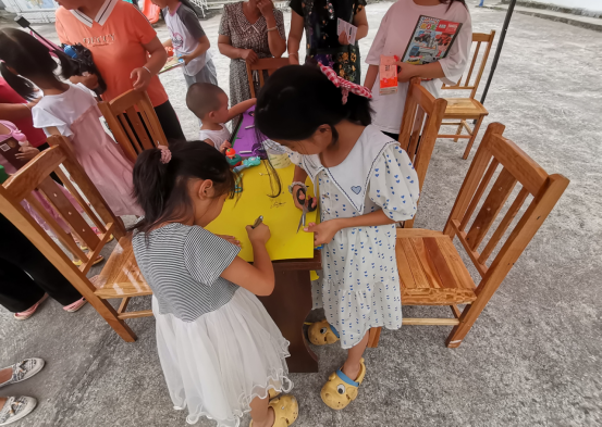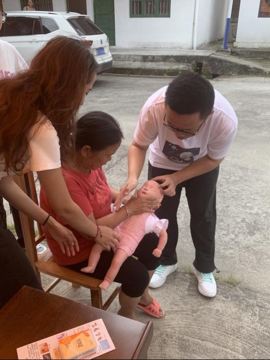 活动现场,志愿服务队还通过景情模拟、现场演示等方式指导村民完成心肺复苏和成人、婴儿海姆立克急救法的具体操作,进一步提高村民家庭自救能力与自救意识。随后,志愿服务队与当地小朋友们一起完成手工剪纸,现场欢声笑语、其乐融融。志愿服务队为乡村小朋友赠送各类书籍,希望他们通过阅读吸取博大精深的知识养分,在阅读中体验快乐,在阅读中健康成长。