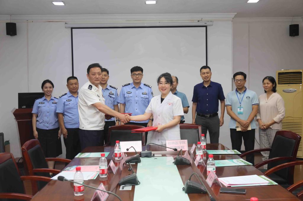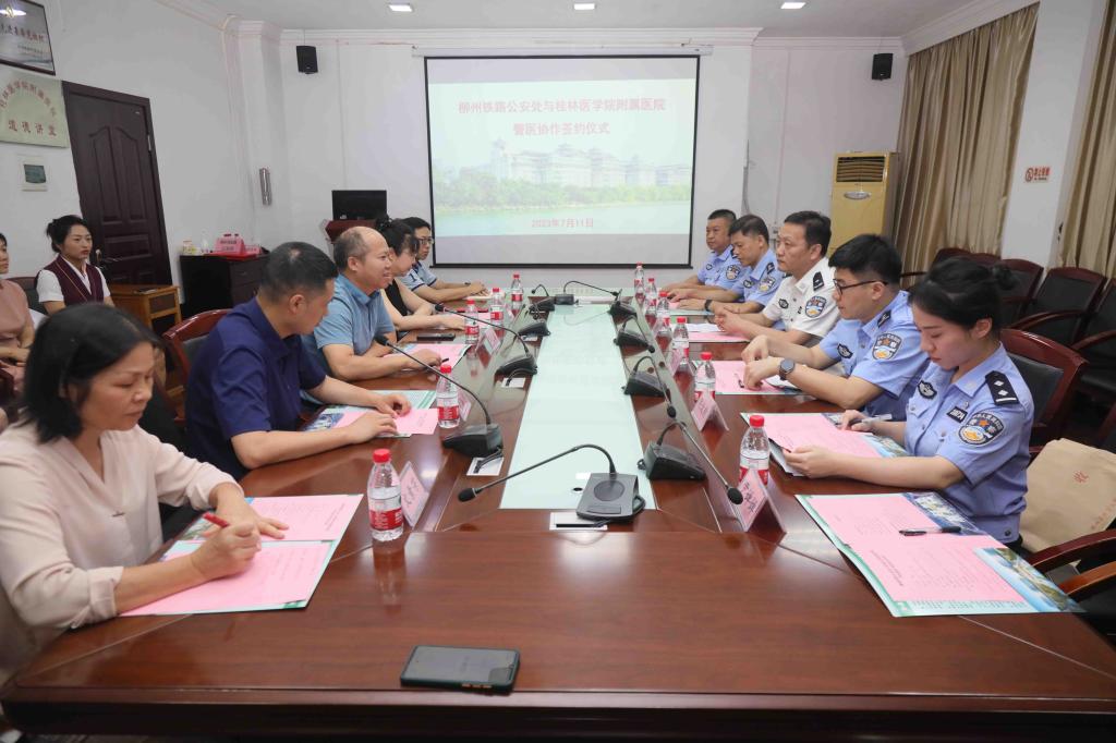为开创警医合作新局面,7月11日下午,附属医院与柳州铁路公安处举行警医协作签约仪式,建立健全长效合作机制。柳州铁路公安处党委书记、处长李建华等一行6人,医院党委书记覃克强、院长汪丽燕、副院长王振冉及相关职能部门和临床科室负责人参加仪式。