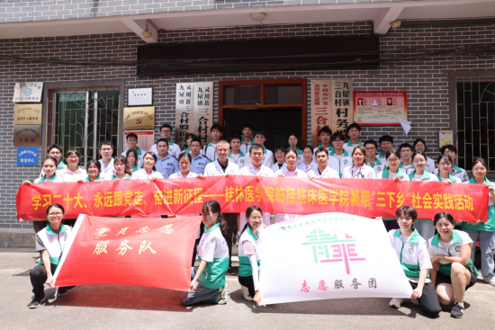 为切实发挥共青团作为广大青年在实践中学习中国特色社会主义和共产主义的学校作用,引领学生立志做有理想、敢担当、能吃苦、肯奋斗的新时代好青年,7月10日—12日,临桂临床医学院菁华志愿服务团44名师生到桂林市灵川县九屋镇江头村、甘草村、三合村开展以“学习二十大、永远跟党走、奋进新征程”为主题的暑期文化科技卫生“三下乡”社会实践活动。团队成员分为五个小组,按照工作安排,有序地开展工作。