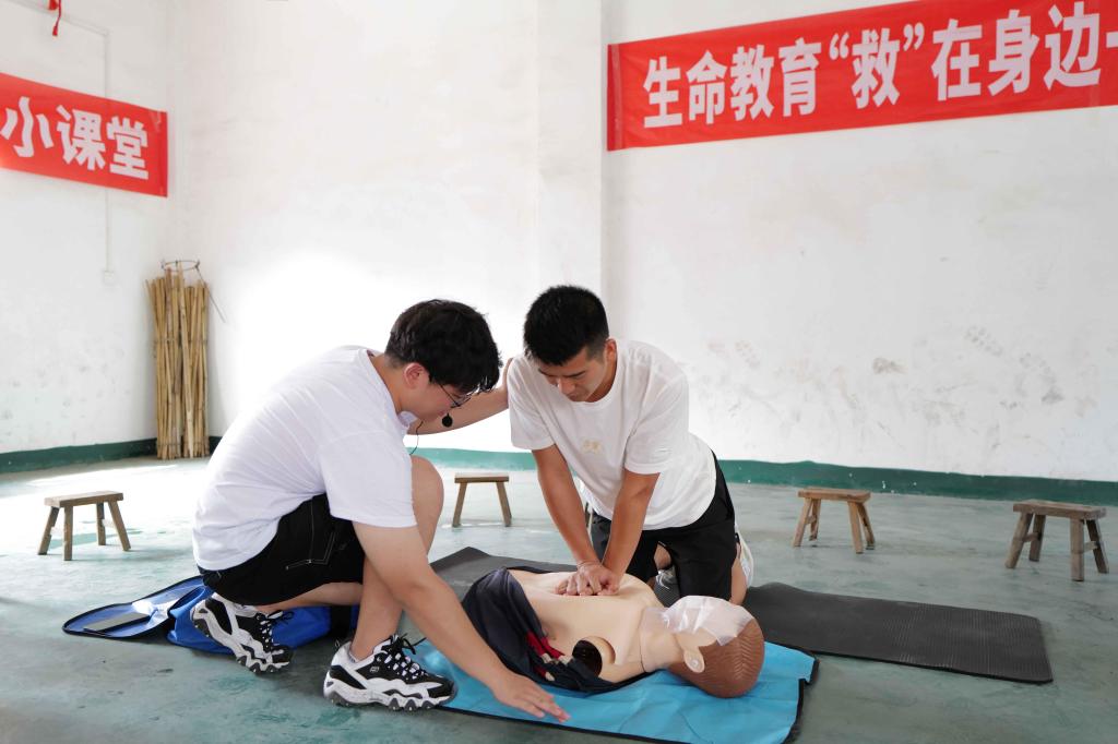 溺水急救,心肺复苏是关键。对此,志愿者们通过讲解防溺水知识、张贴安全教育海报、传授安全急救技能和开展警示教育等形式,提升青少年的安全意识和自救能力。同时,志愿服务队邀请孩子、家长与志愿者一起演练,一对一认真学习心肺复苏的动作要领和操作步骤,在练习中巩固学习内容,掌握救护的基本理论知识和基本技能。