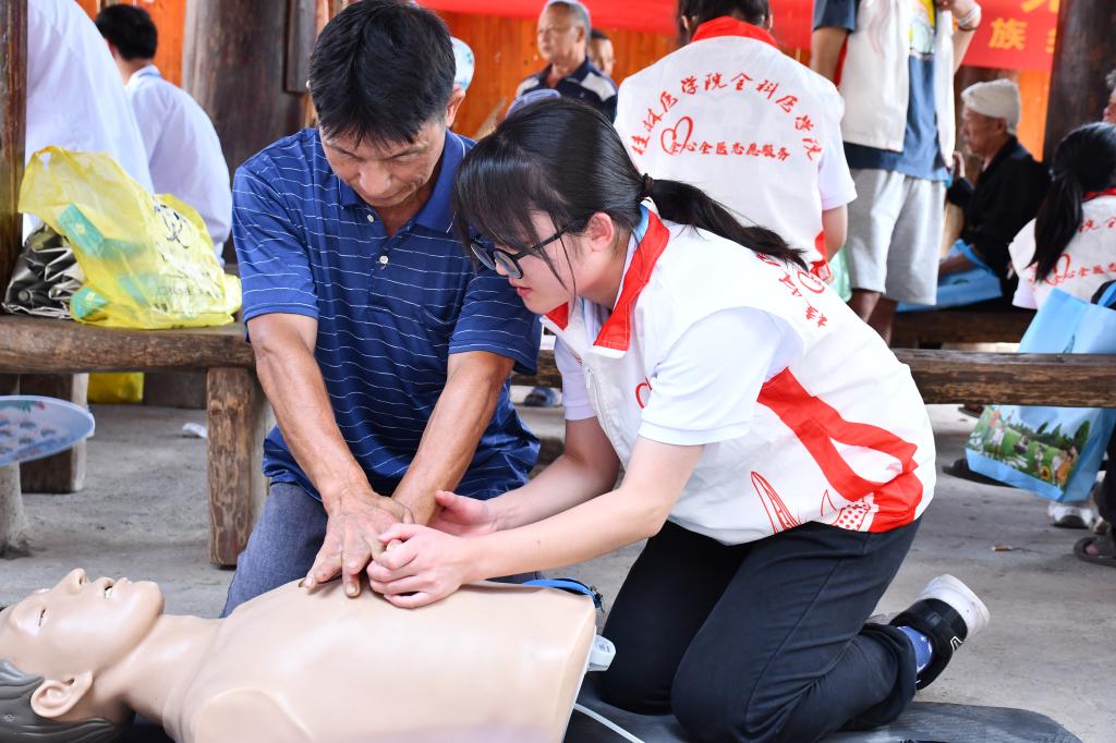 为了传达健康理念,提高基层群众的健康意识和急救能力,观察团成员积极开展了一系列志愿服务活动,包括健康宣讲、急救技能培训和义诊等。通过健康知政策的普及和急救技能的培训,引导基层群众关注、学习和掌握健康知识与必要的急救技能,使群众认识到相关知识和技能的重要性,让群众的基本医疗知识储备得到增强,对国家最新医疗政策有更深入的认识,进一步加强基层群众对国家医疗发展认同。