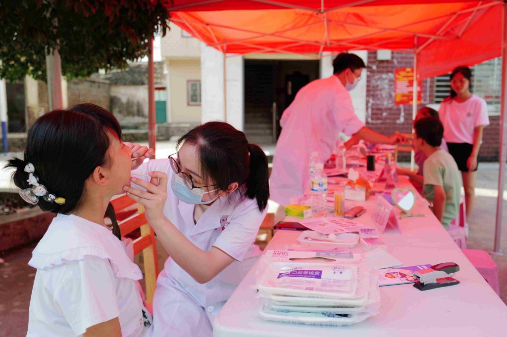 一大早,一支由桂林医学院口腔医学院医务人员和大学生志愿者组成的队伍就来到临桂镇宛田瑶族乡,将准备好的一个个“护牙包”发放给前来咨询的群众,为村民们讲解正确的刷牙方法和日常口腔保健知识,并进行简单的口腔健康检查,同时为适龄儿童进行免费口腔涂氟。