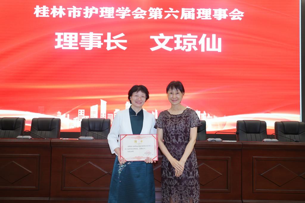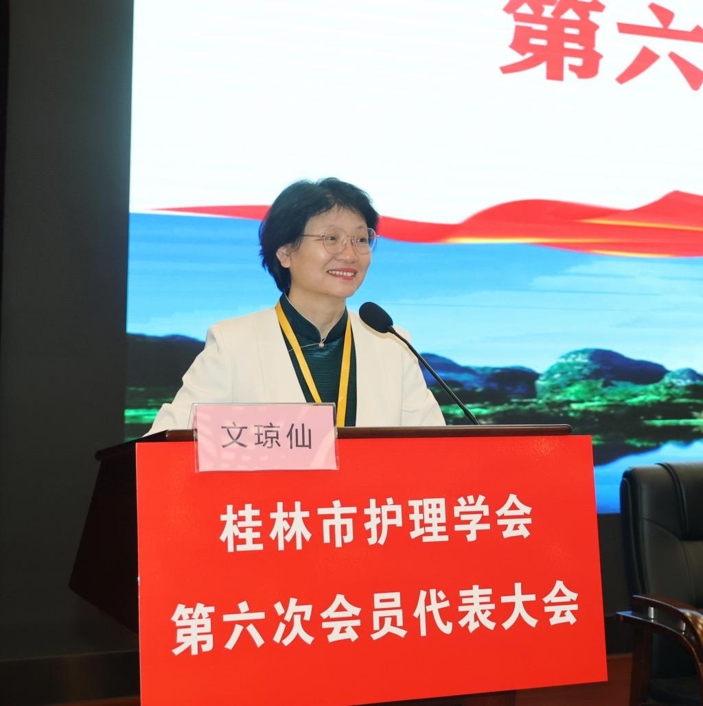 新当选的理事长文琼仙在表态发言中表示,护理学会是政府联系护理工作者的纽带和桥梁,是发展护理学的社会力量,对推进护理科技创新,促进护理学科和护理技术人才的成长和提高,发挥着非常重要的作用,新一届理事会将不辱使命,团结广大会员和全市护理工作者,不断探索和创新学会工作方式,拓展学会职能,进一步发挥专业学术团体的力量,围绕卫生健康工作重点,强化护理人文关怀,优化护理服务流程,健全覆盖急性期诊疗、慢性期康复、稳定期照护、终末期关怀的护理服务体系,以学科建设带动护理人才培养和护理服务能力提升,谱写学会发展新篇章,为推动桂林护理事业发展,切实提升保障人民健康,为建设健康桂林、健康中国作出新的贡献。