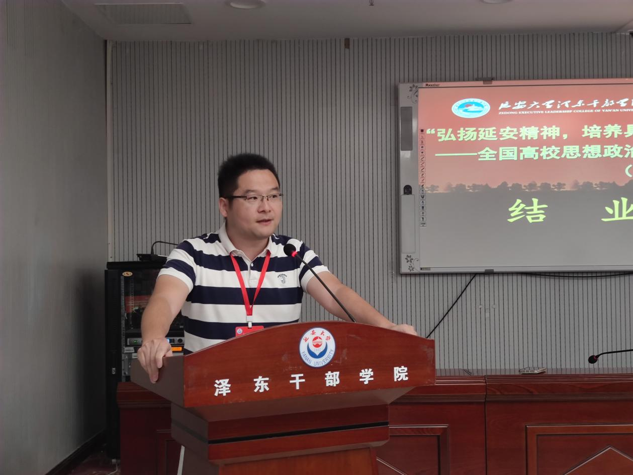 在结业仪式上,马克思主义学院形势与政策教研室党支部书记于堃作为本院参加学习的党员教师代表作了题为《追寻共产党人的精神家园》的发言,发言中于堃以飞扬的文采和一首题为《浪淘沙·延安》的词创作获得全场学员热烈的掌声。